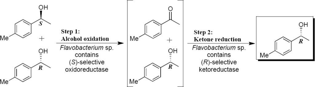 Deracemisation process mediated by Flavobacterium sp. (HK1D9).