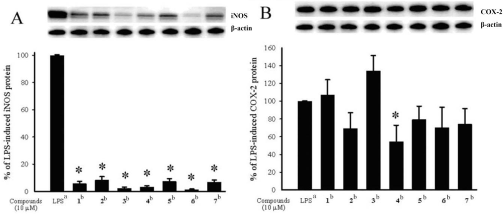 - Jean, Y-H; Chen, W-F; Duh, C-Y; Huang, S-Y; Hsu, C-H; Lin, C-S; Sung, C-S; Chen, I-M; Wen, Z-H. Inducible nitric oxide synthase and cyclooxygenase-2 participate in anti-inflammatory and analgesic effects of the natural marine compound lemnalol from Formosan soft coral. Lemnalia cervicorni Eur J Pharmacol 2008, 578, 323–331. [Google Scholar]