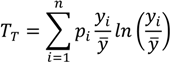 Measures of general entropy may also be used in the context of measuring within- and between-group inequality in health [50]. This family of measures may be less familiar to decision makers and regulatory analysts than the family of measures derived from the Variance, but they offer some significant advantages. Generalized measures of entropy incorporate a parameter that allows for differential sensitivity of the resulting index to different parts of the health distribution [30,49]. The parameter value leads to the choice of a specific index within the family of measures of general entropy. Two common indices of inequality that are part of the class of entropy-based measures are the Theil index (T) and the Mean Log Deviation (MLD) [51]. For individual-level data, total inequality in health/exposure y measured by the Theil index can be written [52] as: