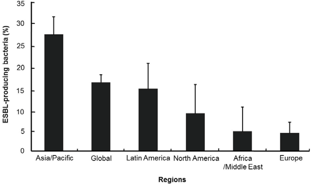 - Hawser, S.P.; Bouchillon, S.K.; Hoban, D.J.; Badal, R.E.; Hsueh, P.R.; Paterson, D.L. Emergence of high levels of extended-spectrum-β-lactamase-producing Gram-negative Bacilli in the Asia-Pacific region: Data from the Study for Monitoring Antimicrobial Resistance Trends (SMART) program, 2007. Antimicrob. Agents Chemother. 2009, 53, 3280–3284. [Google Scholar] [CrossRef]