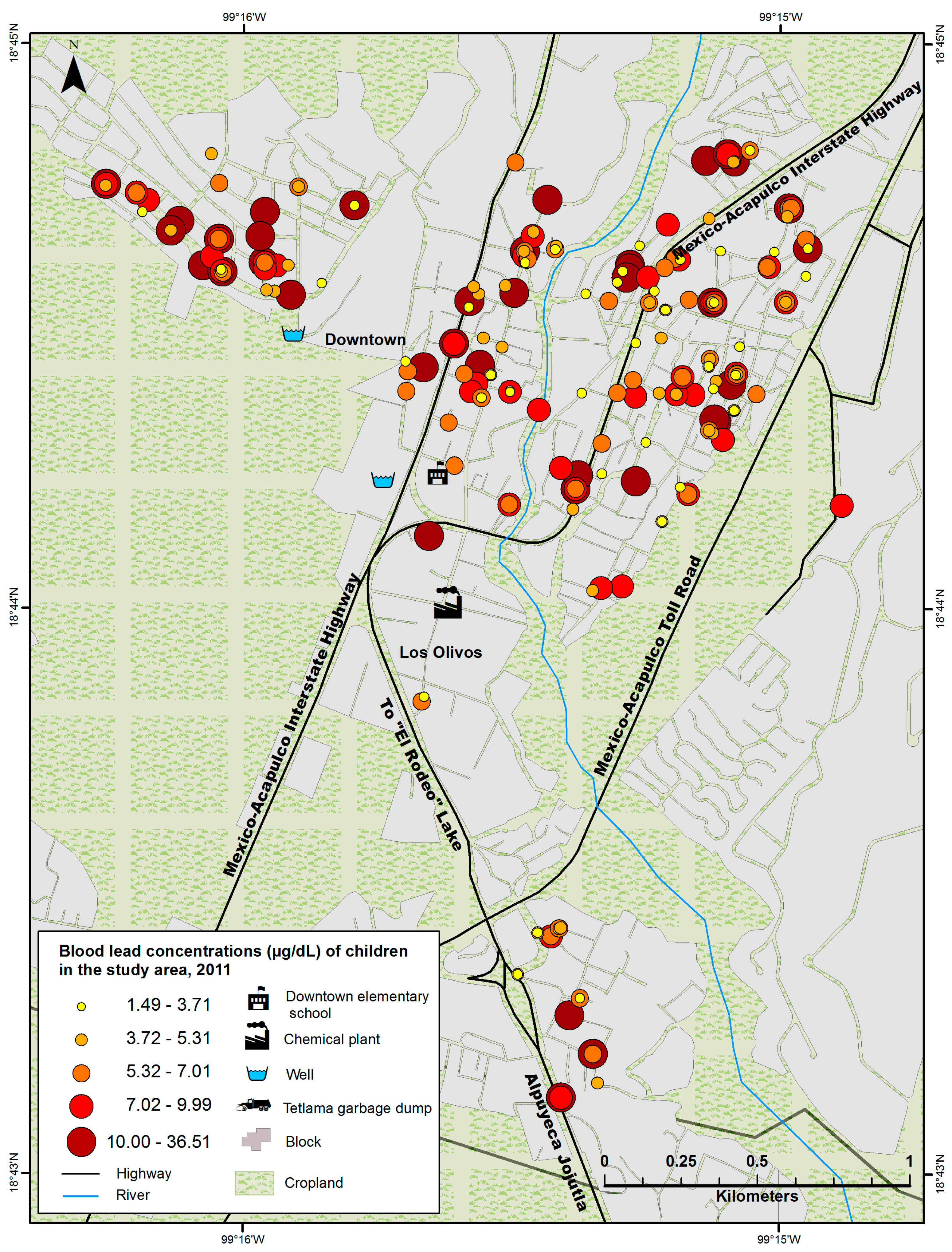 Farías, P.; Álamo-Hernández, U.; Mancilla-Sánchez, L.; Texcalac-Sangrador, J.L.; Carrizales-Yáez, L.; Riojas-Rodríguez, H. Lead in School Children from Morelos, Mexico: Levels, Sources and Feasible Interventions. Int. J. Environ. Res. Public Health 2014, 11, 12668-12682. https://doi.org/10.3390/ijerph111212668