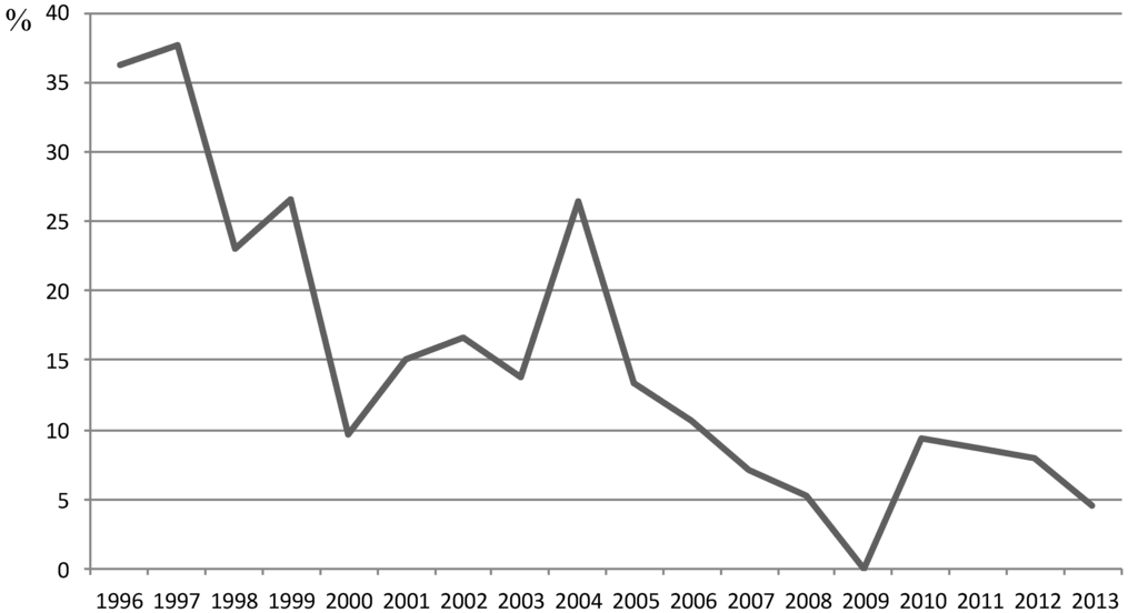 | 1996 | 18.18 | 27.27 | 9.09 |