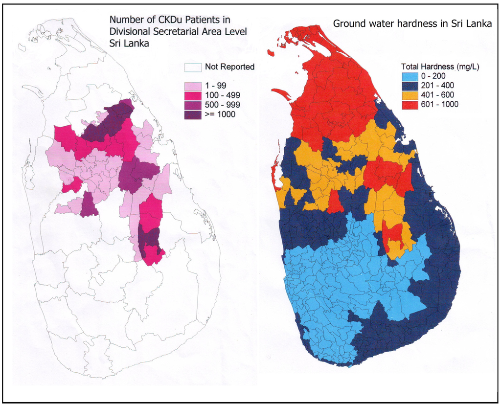 - In the adjoining farming areas of the Northern Province of Sri Lanka, where the ground water hardness level is known to also be hard or very hard, there have not been any significant number of CKDu cases reported.