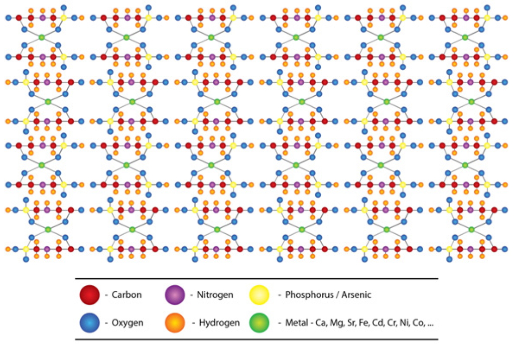 Helfter Enterprises, Inc. now doing business as Advanced Biological Concepts has proposed a structure for glyphosate matrix [61], while Caetano and coworkers [52] have developed a more advanced and comprehensive structure for glyphosate metal complexes. The latter group has used density functional theory (DFT) molecular modeling methods to evaluate structural thermodynamic and electronic effects that govern the complexion between glyphosate and metals. With the permission of both groups of authors, we used these structures to propose a glyphosate-metal lattice to explain the possible role played by glyphosate, hardness, As and other nephrotoxic metals in the pathogenicity of CKDu in Sri Lanka (Figure 5).