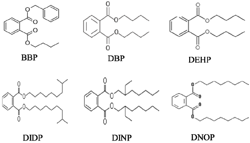 Mainly due to their endocrine disrupting potency, which causes adverse health effects, phthalates that used to be regarded as safe are now of wide concern. Some phthalates were reported to have the potential to cause decreased testicular weight and seminiferous tubular atrophy, increased DNA damage in men’s sperm, premature breast development in girls, shortened pregnancy and decreased anogenital distance in newborn male babies (summarized by Schecter et al. [7]). These reproductive defects most likely result from the estrogen disrupting activity of certain phthalates.