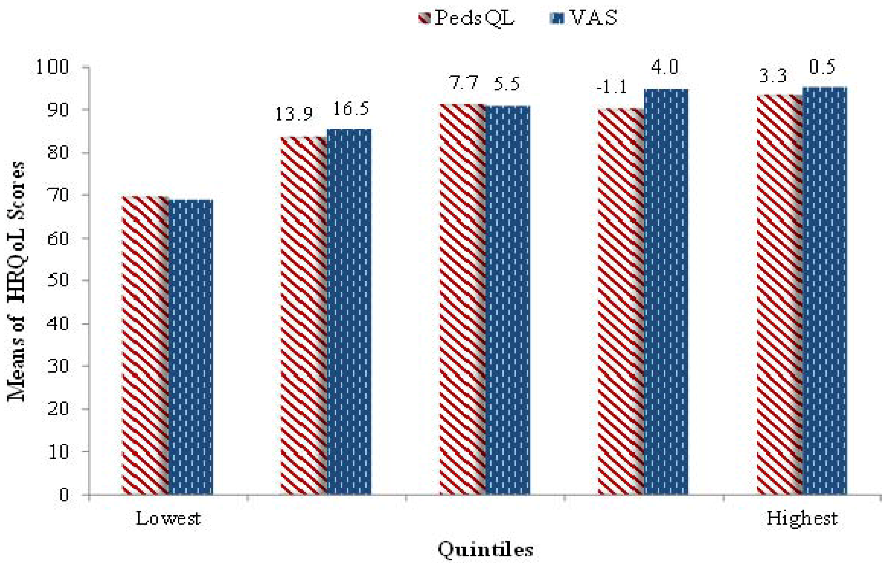 Means of VAS (PedsQLTM) Scores by Quintiles of PedsQLTM (VAS).