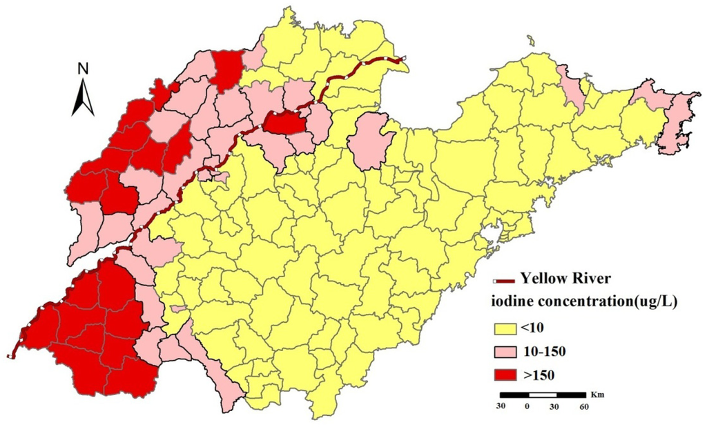 Gao, J.; Zhang, Z.; Hu, Y.; Bian, J.; Jiang, W.; Wang, X.; Sun, L.; Jiang, Q. Geographical Distribution Patterns of Iodine in Drinking-Water and Its Associations with Geological Factors in Shandong Province, China. Int. J. Environ. Res. Public Health 2014, 11, 5431-5444. https://doi.org/10.3390/ijerph110505431