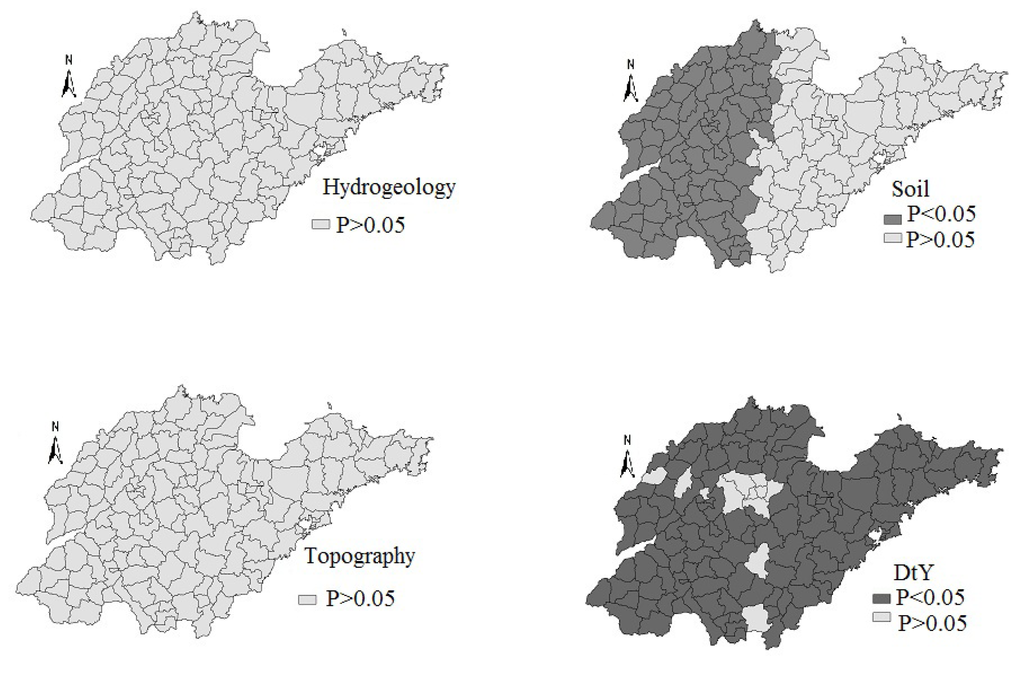 | Hydrogeology | Unconsolidated rock water | −0.0385 | 0.0533 | −0.7200 | 0.4716 |