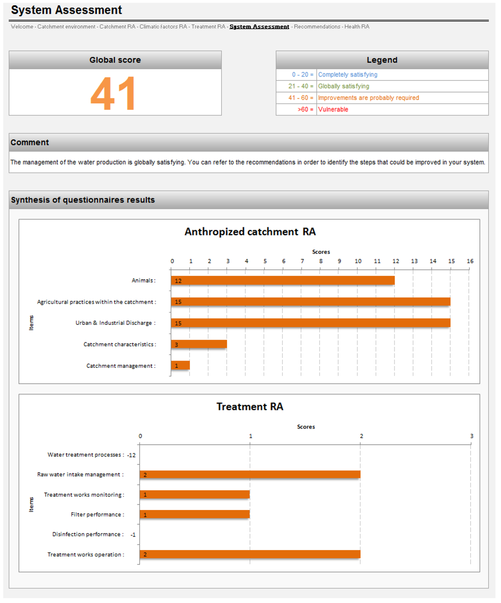 | France (ASTEE) | 2009 | Ogeris, aide à l’évaluation des risques microbiologiques dans les petites unités de production/distribution d’eau potable | Vulnerability assessment | <5000 | All types | Recommendations and priorization of actions |