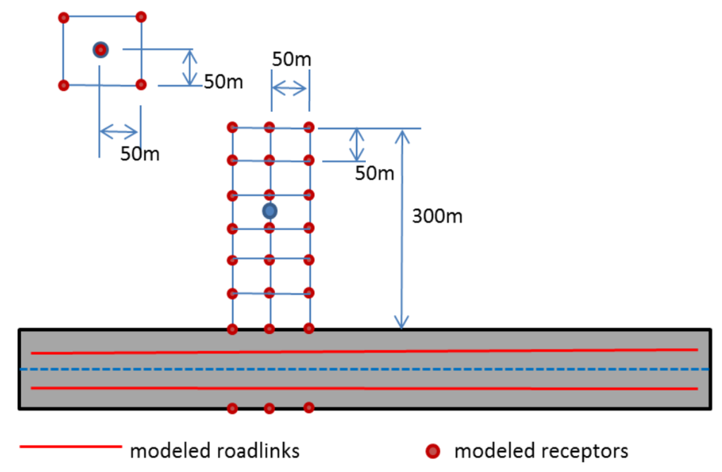 Model receptors near roadways: 24-receptor mini-grid network.