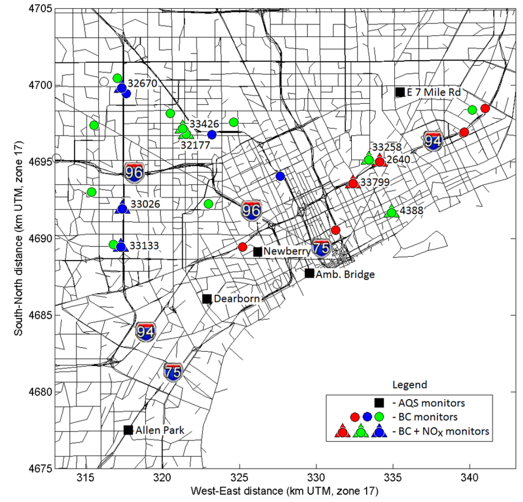 x, only one monitoring site was available in the modeling domain. The “East 7 mile” site is in the North-Eastern corner of the modeling domain, away from major highways.