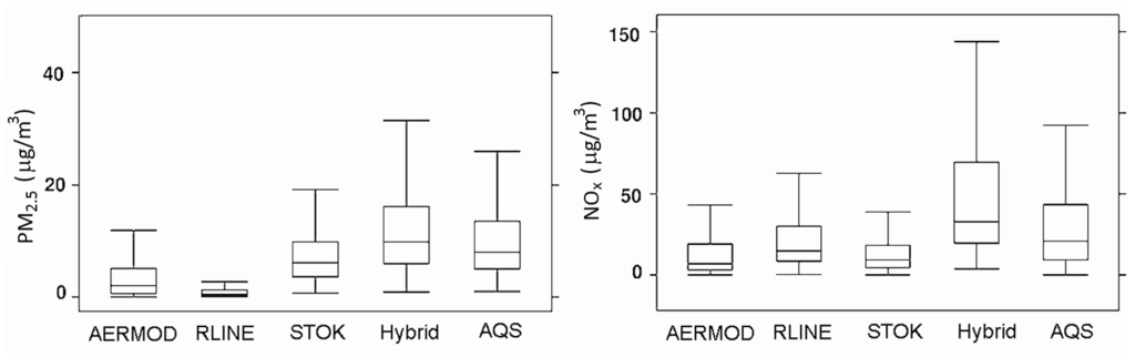17]. Two main types of air quality models are relevant for this purpose: grid-based chemical transport models and plume dispersion models. Grid-based chemical transport models, such as the Community Multiscale Air Quality (CMAQ) model, estimate concentrations for large geographic areas at high time resolution but cannot resolve features smaller than a grid cell, usually several kilometers across [