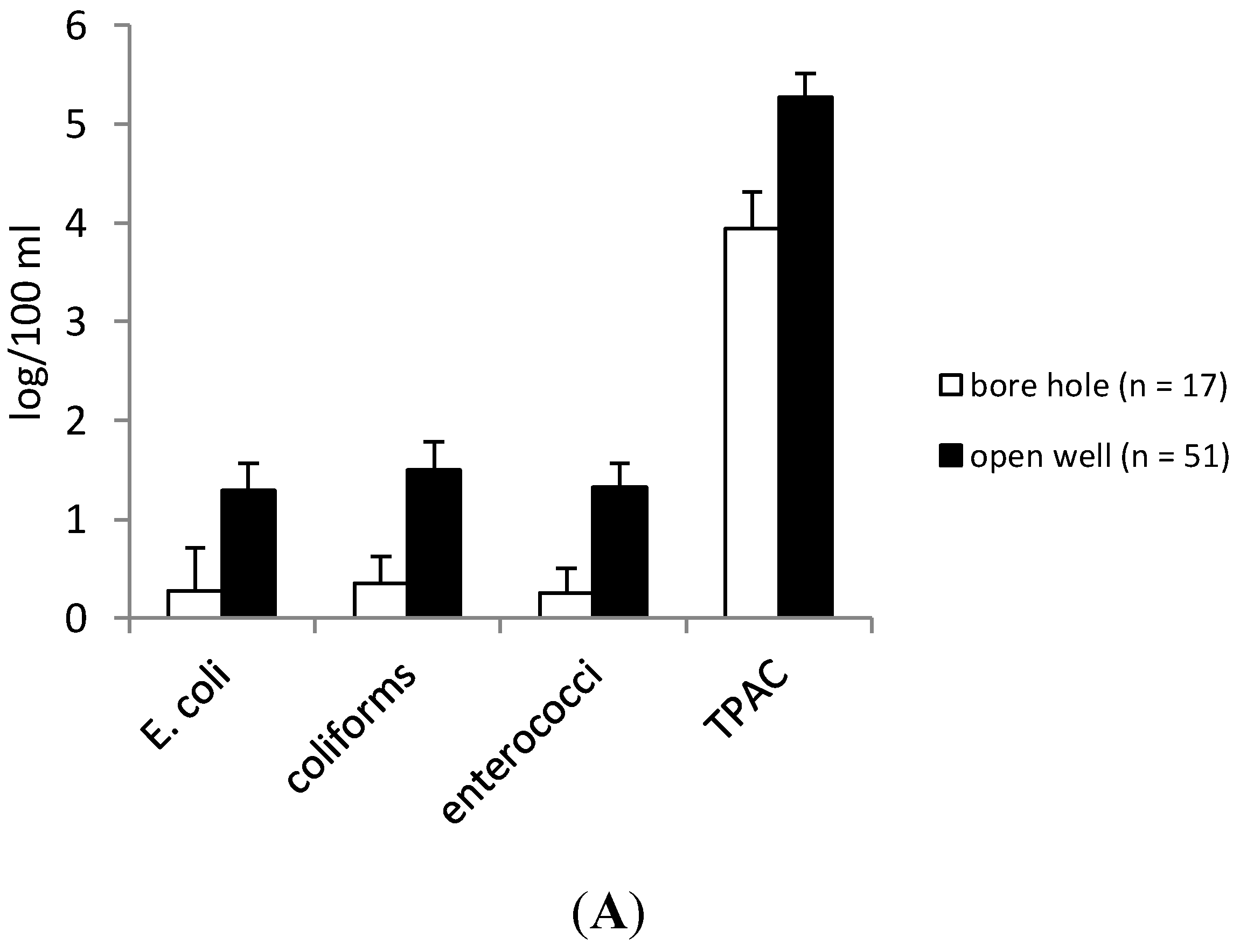- Richardson, H.Y.; Nichols, G.; Lane, C.; Lake, I.R.; Hunter, P.R. Microbiological surveillance of private water supplies in England—The impact of environmental and climate factors on water quality. Water Res. 2009, 43, 2159–2168. [Google Scholar] [CrossRef] [PubMed]