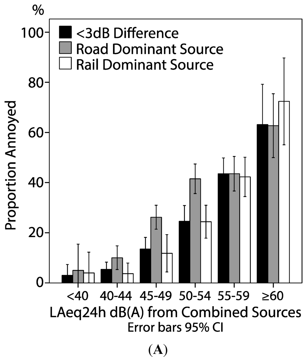 3.4. Noise Annoyance Related to Road, Rail and Combined Sources