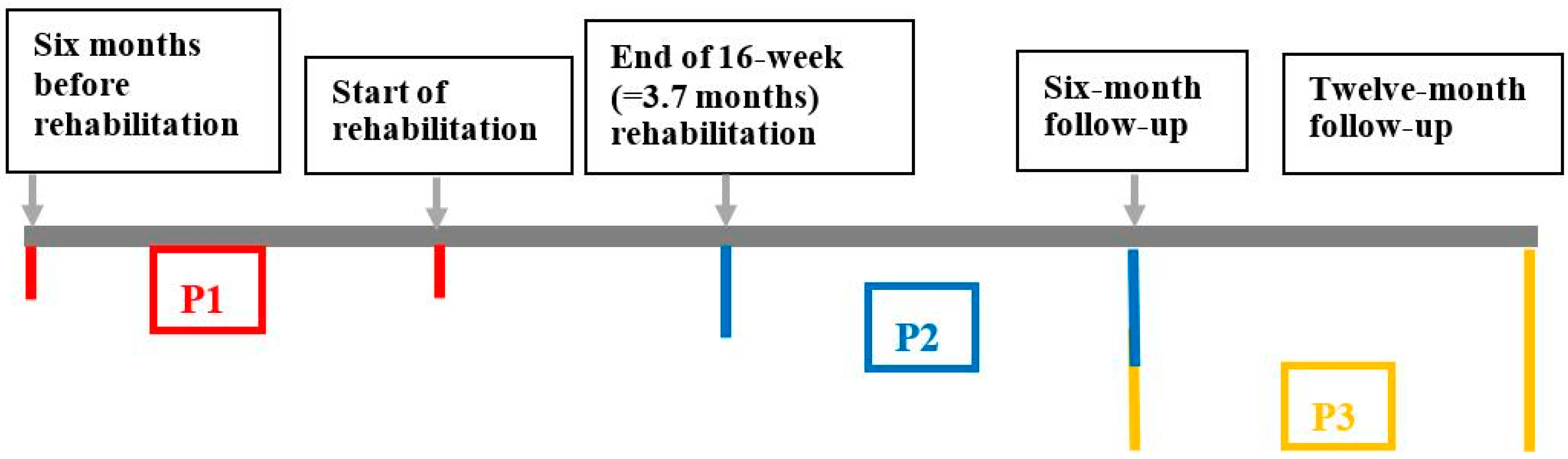 Period 3 (P3): from completion of the 16 weeks of rehabilitation and seven to twelve months thereafter (Figure 4).