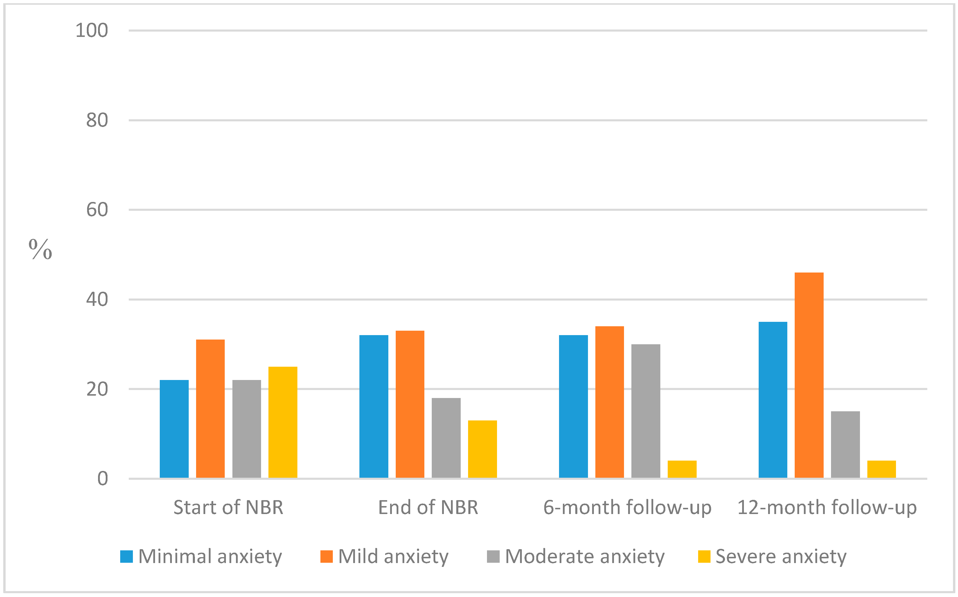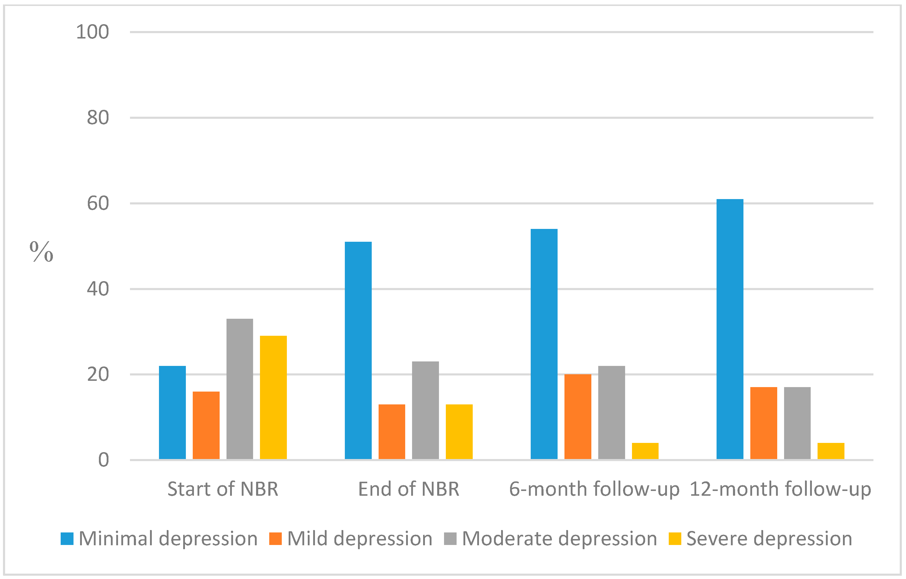 - To explore whether the mental health and well-being of NBR participants had improved at the completion of the rehabilitation as well as six and twelve months thereafter, compared with the start of rehabilitation (Aim 1).