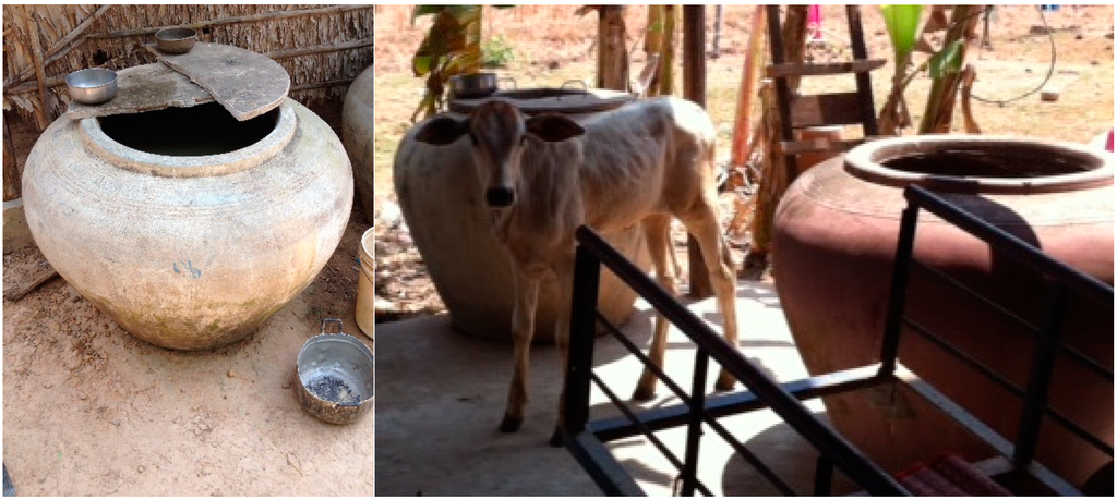 Mothers leave babies with grandmas to go to the field and the grandmas give baby unclean water with sugar (making them ill). If the mother doesn’t clean the house, the baby will get a lot of sickness, and get into a bad condition because of the dust in the house. Families in not so good condition store water in huge clay jars outside the house, but families in good condition use machine to filter water. Some also boil water to avoid diarrhea.(Village Health Volunteer, 46 years old, female)