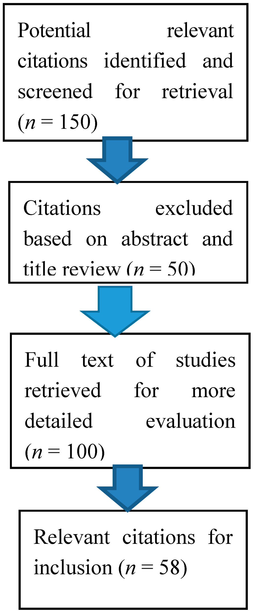 Our searches identified 150 potential relevant papers, of which 100 met inclusion criteria (see Figure 1). Results were comprised of longitudinal and prospective (four), observational/descriptive (cross-sectional, survey) (36), reviews of literature/policies (10), measurement scale (one), and social media studies (seven).