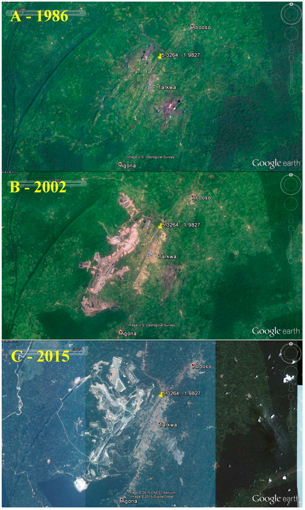 - Schueler, V.; Kuemmerle, T.; Schröder, H. Impacts of surface gold mining on land use systems in Western Ghana. Ambio 2011, 40, 528–539. [Google Scholar] [CrossRef] [PubMed]