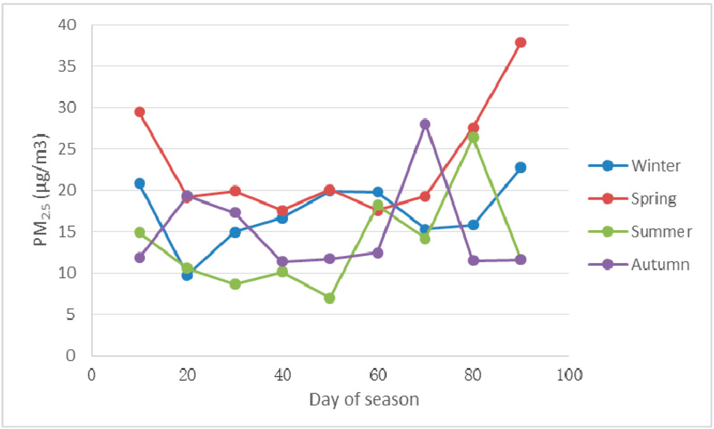 Figure 11. Seasonal PM2.5 mass concentration variation in Nagasaki.