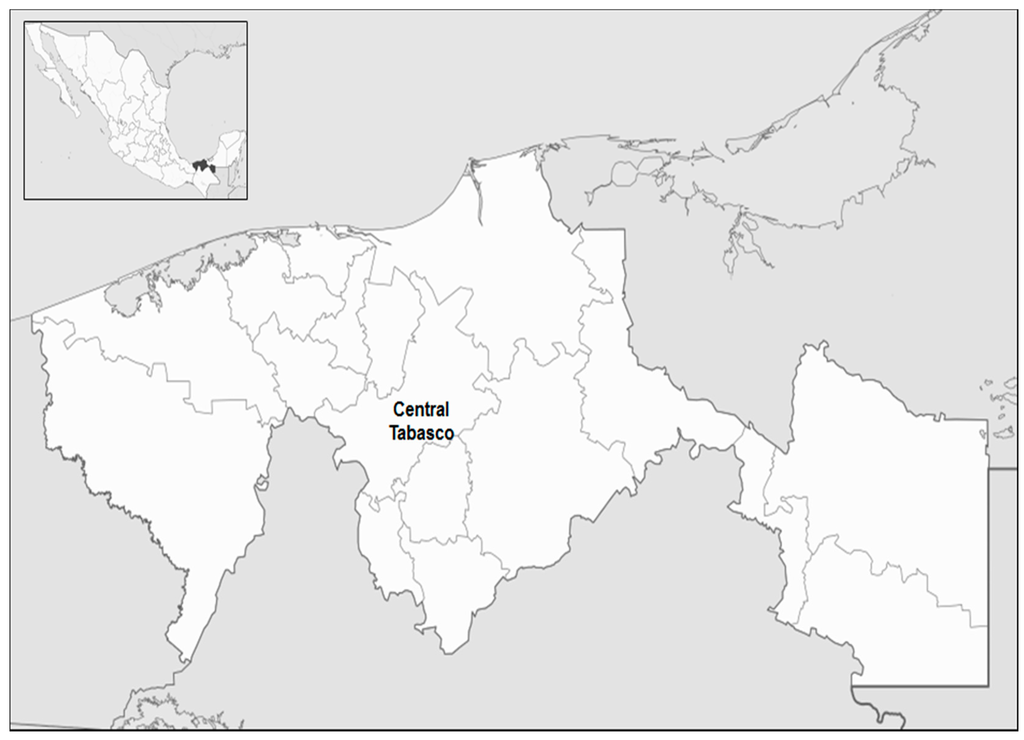Tabasco state map; location of the population to be studied.