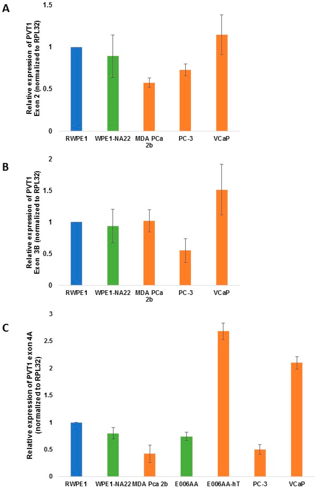| PVT1 exon | WPE1-NA22 | MDA PCa 2b | E006AA | E006AA-hT | PC-3 | VCaP |