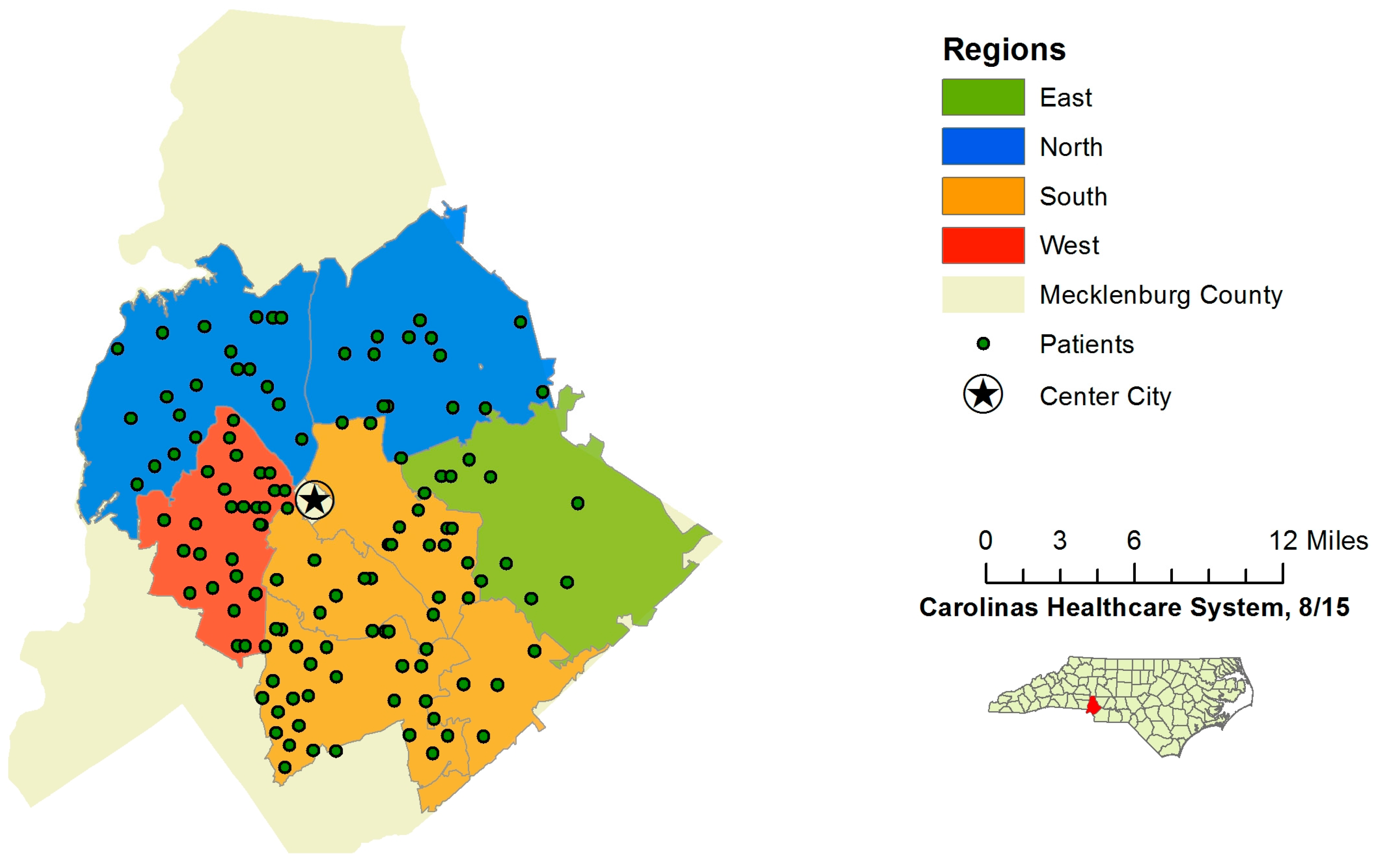Region map of Mecklenburg County, NC.