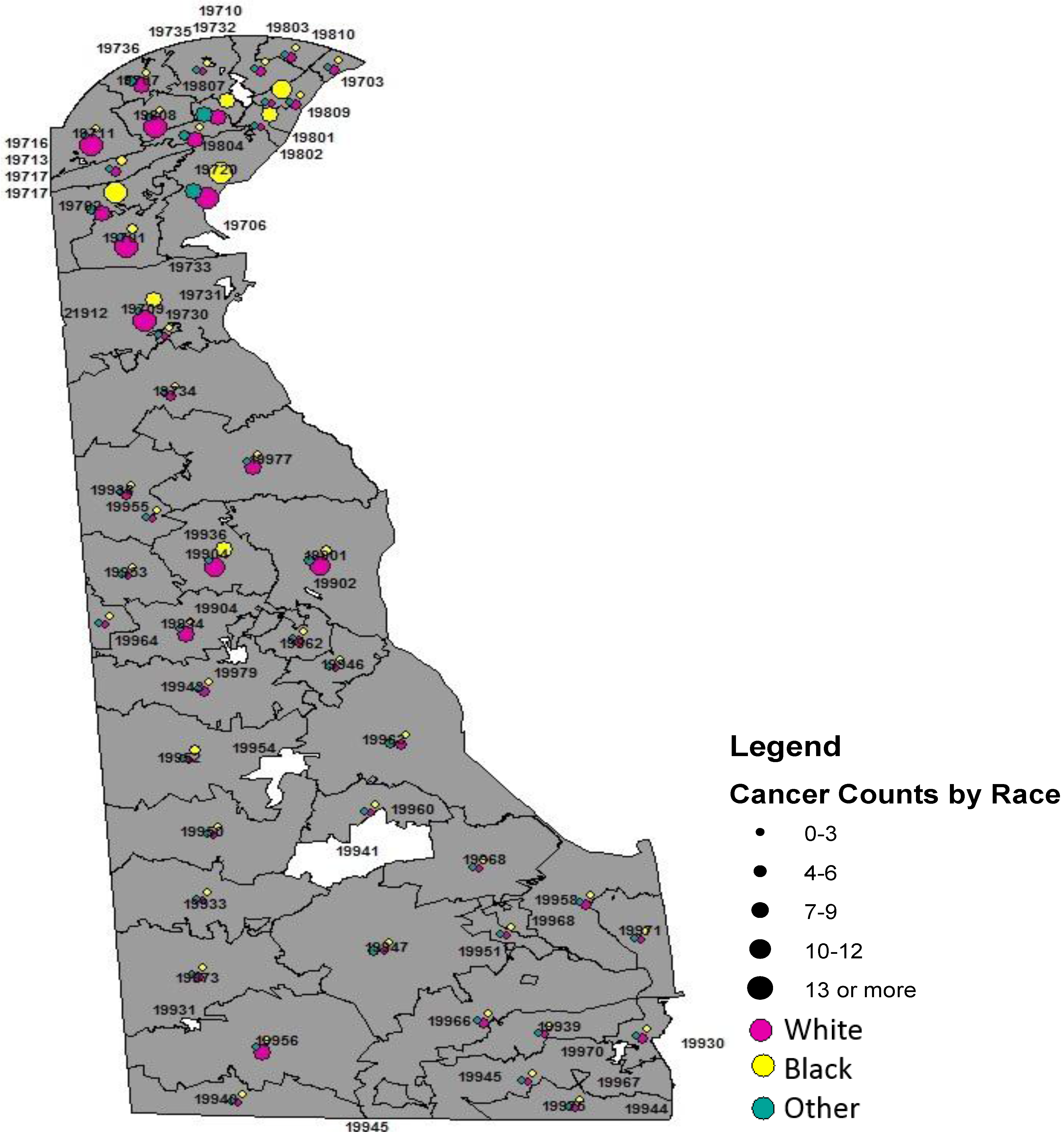 Racial Mapping of Childhood Cancer in Delaware State, 2004–2014.