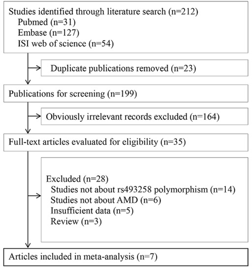 APA StyleWang, Y., Wang, M., Zhang, X., Nie, J., Zhang, M., Liu, X., & Ma, L. (2016). The Association between LIPC rs493258 Polymorphism and the Susceptibility to Age-Related Macular Degeneration. International Journal of Environmental Research and Public Health, 13(10), 1022. https://doi.org/10.3390/ijerph13101022