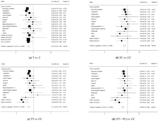 | Subgroup | N | Cases/Controls | Pooled OR (CI) | p | |