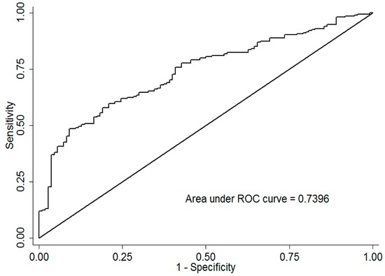As shown in Table 4, a stepwise regression model comprised of all variables was established. Rs23544, rs1063478, baseline glucose, baseline platelet and T4 level were independent predictors of SVR. When including one SNP of rs1063478, a relatively small area was obtained (AUC = 0.587). A bigger AUC of 0.619 was yield when combined with one SNP of rs23544, which suggested that the prediction value of rs23544 was stronger than rs1063478. Adding up the five factors of rs23544, rs1063478, baseline glucose, platelet and T4 level, the prediction value increased to 0.74 (Figure 1).