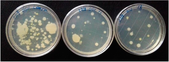 All plates were incubated at 36 °C and read after 48 h by laboratory technicians; results were reported in Colony Forming Units (CFUs)/plate.