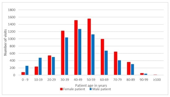 3.2. Distribution of Outpatient Visits by Patient’s Diagnosis