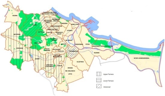 - Podział Administracyjny Gdańska. Available online: http://bip.gdansk.pl/urzad-miejski/Podzial-administracyjny-Gdanska,a,647 (accessed on 30 July 2016).