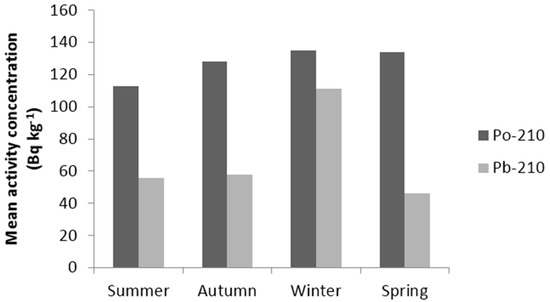 The average 210Po and 210Pb values are given in Figure 3 seasonally.