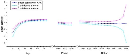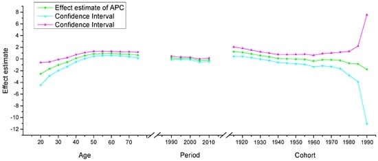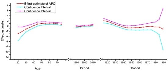 - Yang, Y.; Fu, W.J.; Land, K.C. A methodological comparison of Age-Period-Cohort Models: The Intrinsic Estimator and Conventional Generalized Linear Models. Sociol. Methodol. 2004, 34, 75β110. [Google Scholar] [CrossRef]
