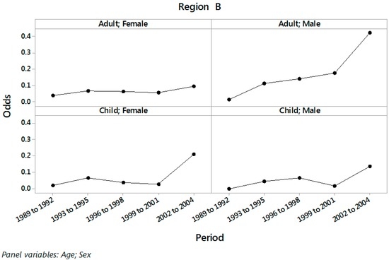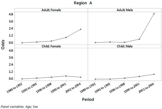 | 2002 to 2004 | Child | Female | 0.309 | (0.210; 0.454) | 0.212 | (0.094; 0.480) |