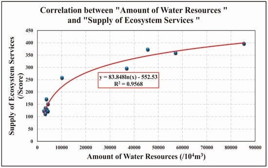 Correlation between “Amount of Water Resources” and “Supply of Ecosystem Services”.