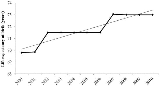 Figure 3. Life expectancy in Jordan (2000–2010). Source: Jordanian Ministry of Health data [33].