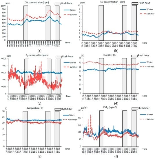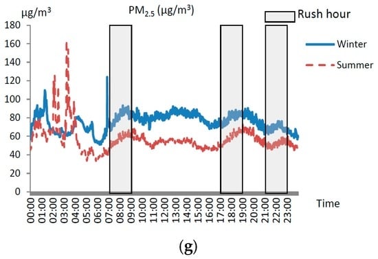 - Cheng, Y.H.; Lin, Y.L.; Liu, C.C. Levels of PM10 and PM2.5 in Taipei Rapid Transit System. Atmos. Environ. 2008, 42, 7242–7249. [Google Scholar] [CrossRef]