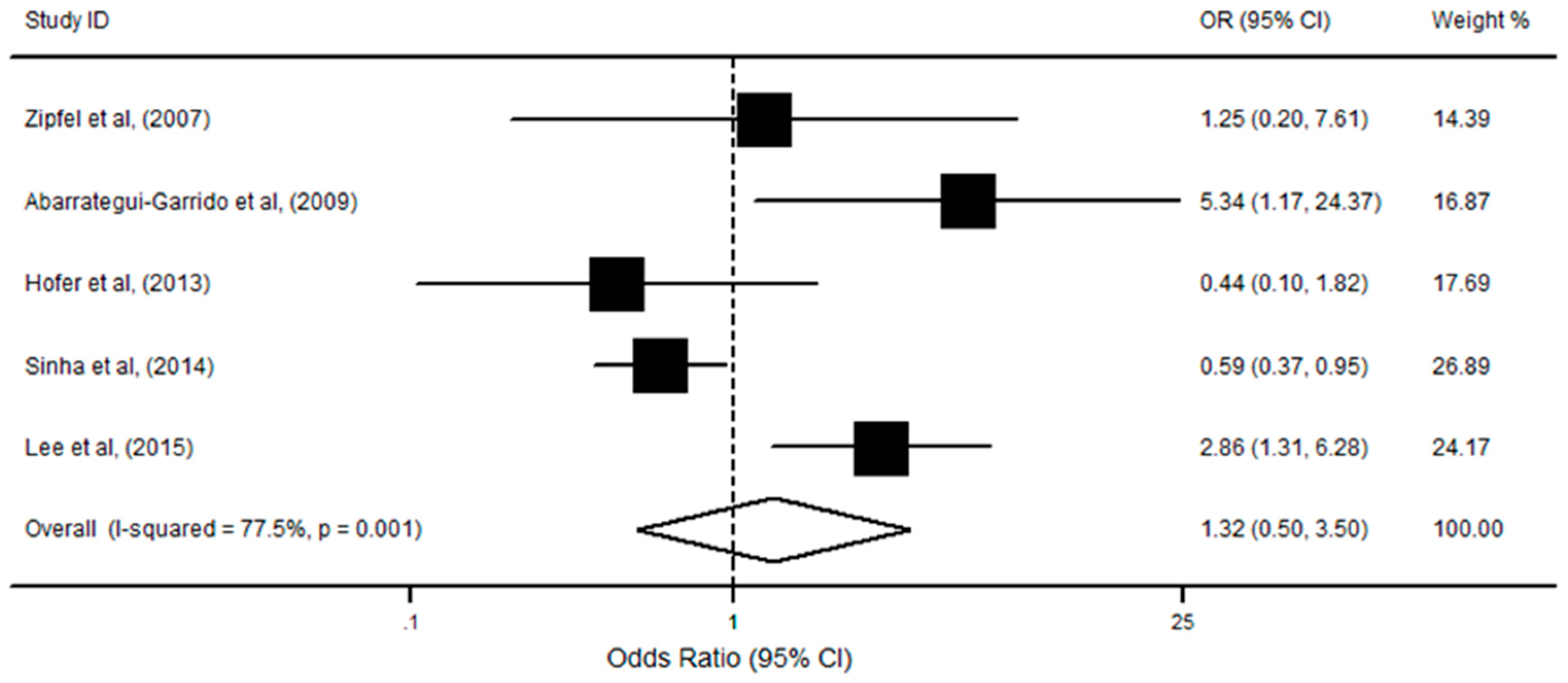 | MLPA | 5 | 2.58 | 1.70, 3.91 | <0.001 | 0.001 |