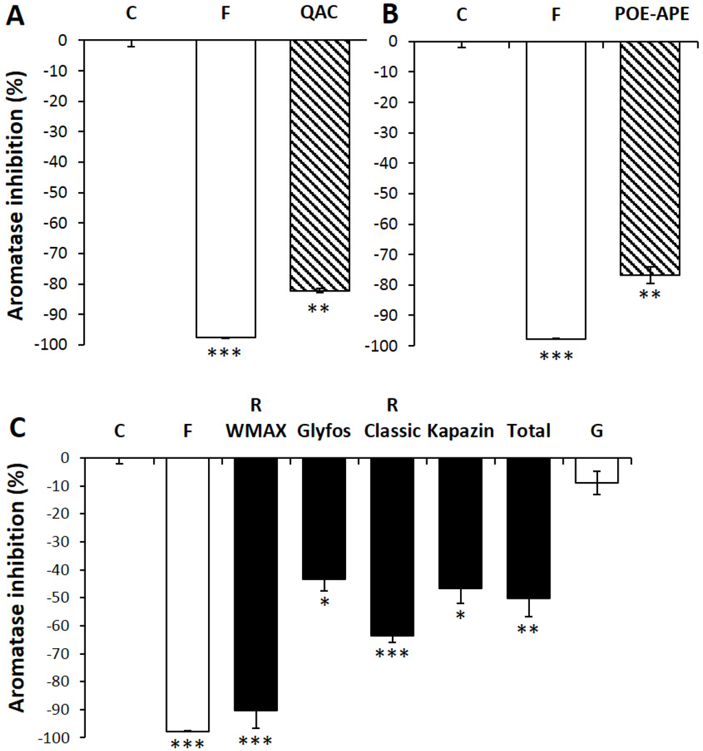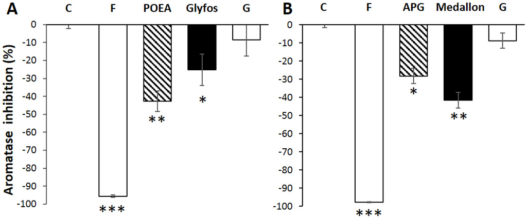 3.3. Aromatase Inhibition by Co-Formulants within and between Formulations
