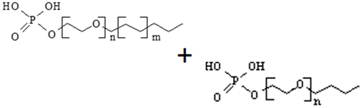 ![]() | 68130-47-2 + 50769-39-6 | polyoxyethylene alkyl ether phosphates (POE-APE) (n = 6–10, m = 2–3) |
