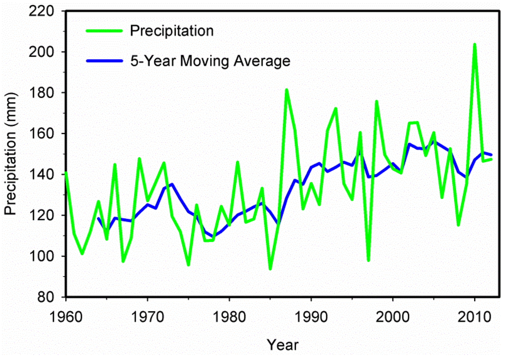 3.1. Inter-Annual Variation of Precipitation