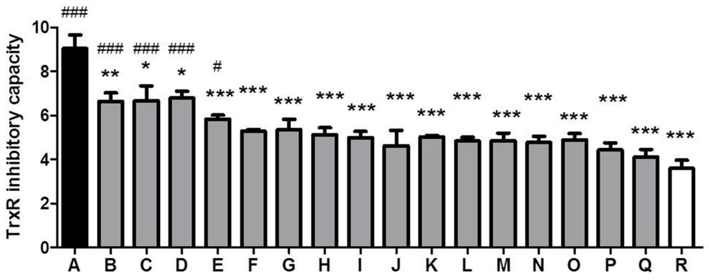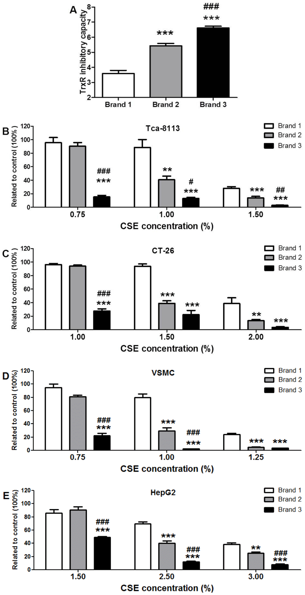 3.3. Comparison of TrxR Inhibitory Capacity of CSEs Prepared from Different Cigarette Brands