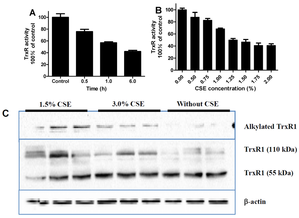 3.2. Time and Dose Effects of CSE on Trxr Activity