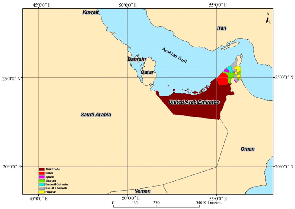 As mentioned earlier the UAE consists of seven federal Emirates as depicted in