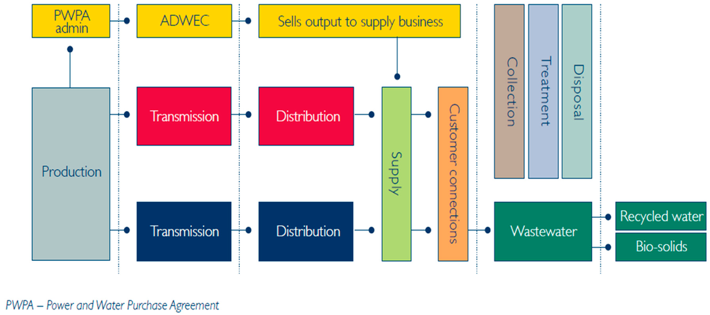 16]. The water and electricity sector in Abu Dhabi was unbundled and restructured in 1999 by the creation of the ADWEA, the ADWEC, the Abu Dhabi Transmission and Dispatch Company, the Abu Dhabi Distribution Company and Al Ain Distribution Company [