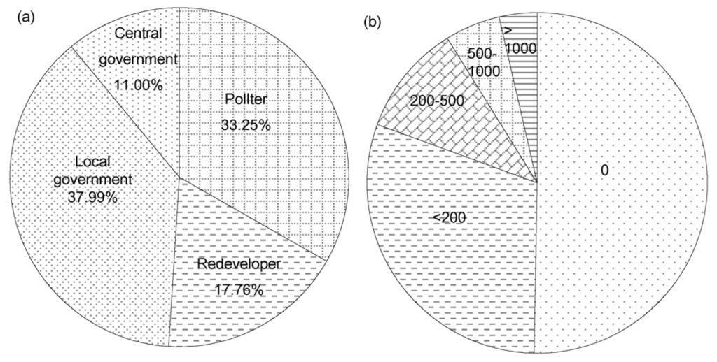 - Preference for liability is interconnected with payment preference. Local governments and polluters are thought to be prior to take responsibility for remediating contaminated sites and the majority of residents reject payment. While, some of them are willing to pay a very small amount of money provided the improvement of living environment. Subjective consideration plays an important role in preference for buying houses and land reuse types. The regeneration of land to provide the public with goods or services (e.g., public parks, commercial use and play areas) is preferred, while residential use and agricultural use are strongly opposed.