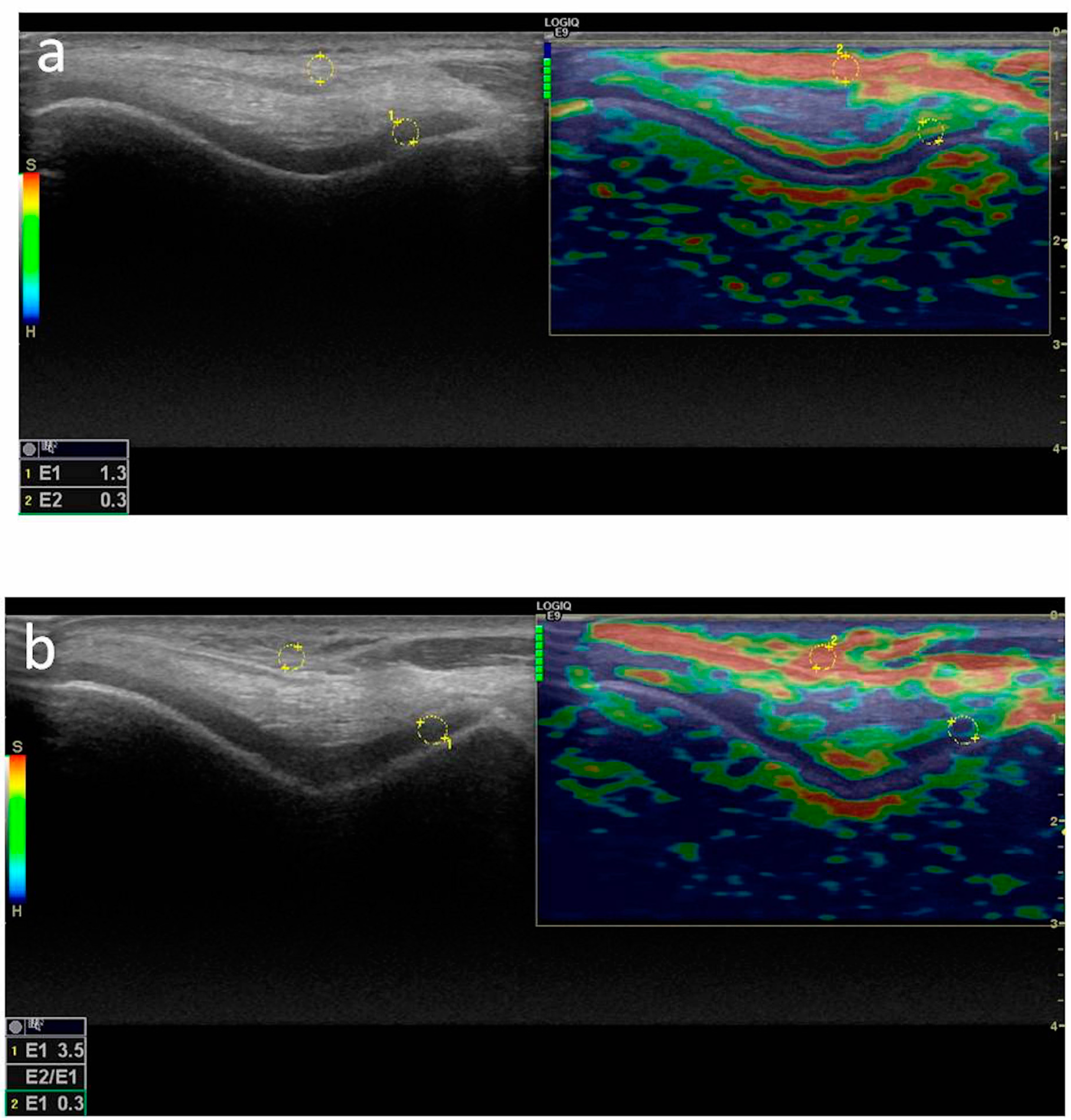 2.2. Ultrasonographic and Sonoelastographic Evaluations